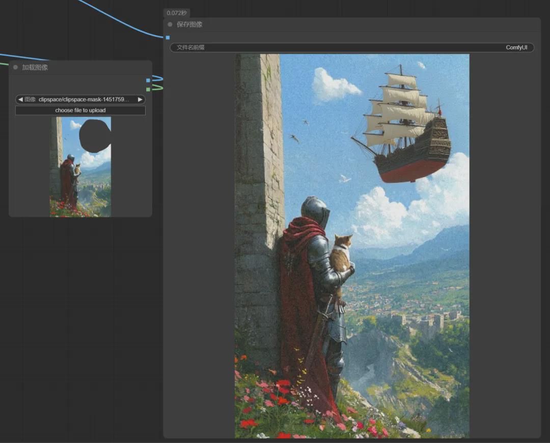 用到的模型和上面一样,也是flux1-fill-dev.safetensors。工作流从这里下载: