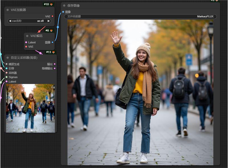 提示词:Full body shot,A young female college student stood on the street waving