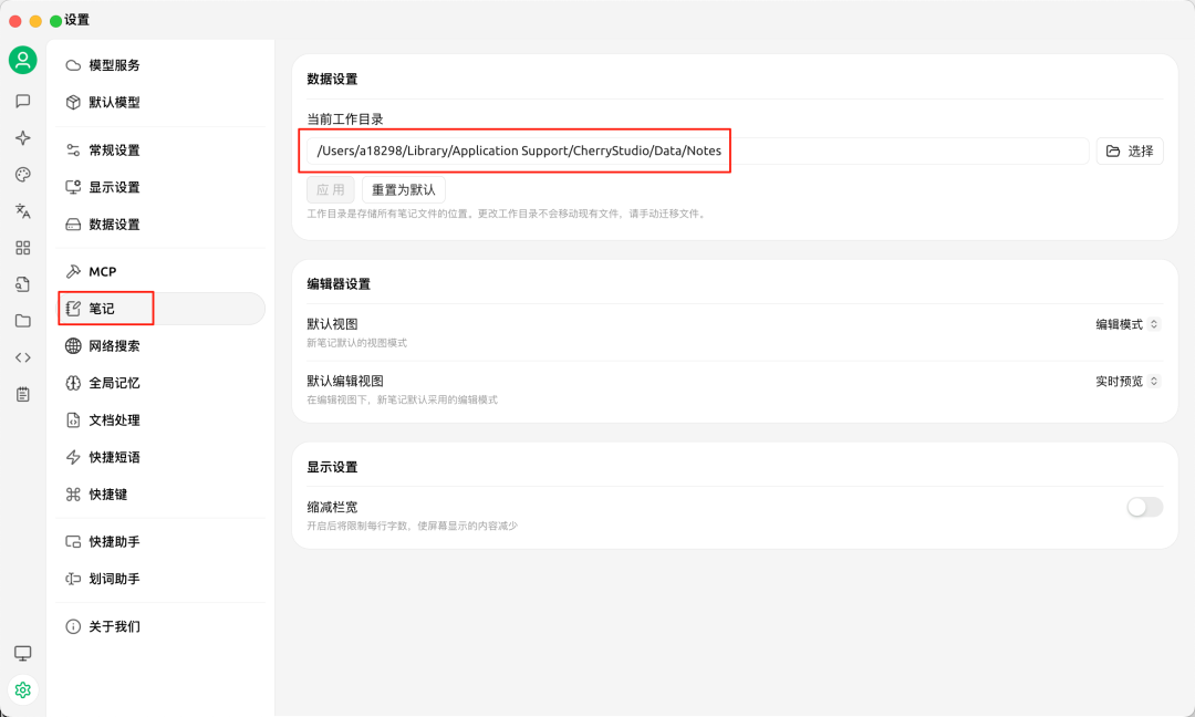 更新后,在设置中有一个笔记功能选项,主要是用于设置笔记的存放路径: