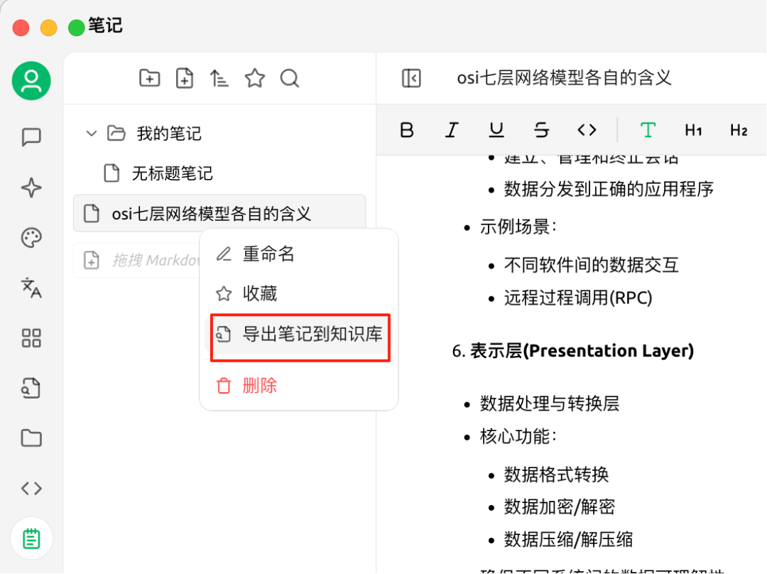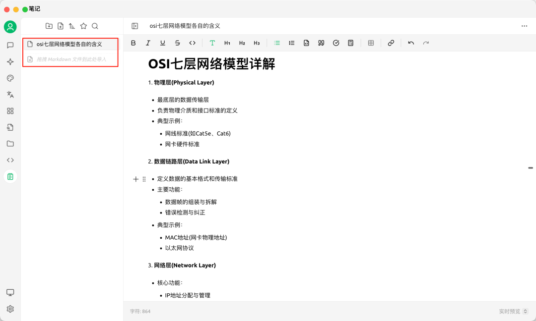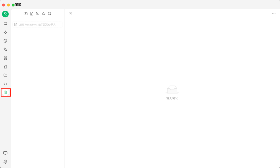 笔记主要是MarkDown格式,可以把已经存在的MarkDown笔记拖放到笔记侧边栏: