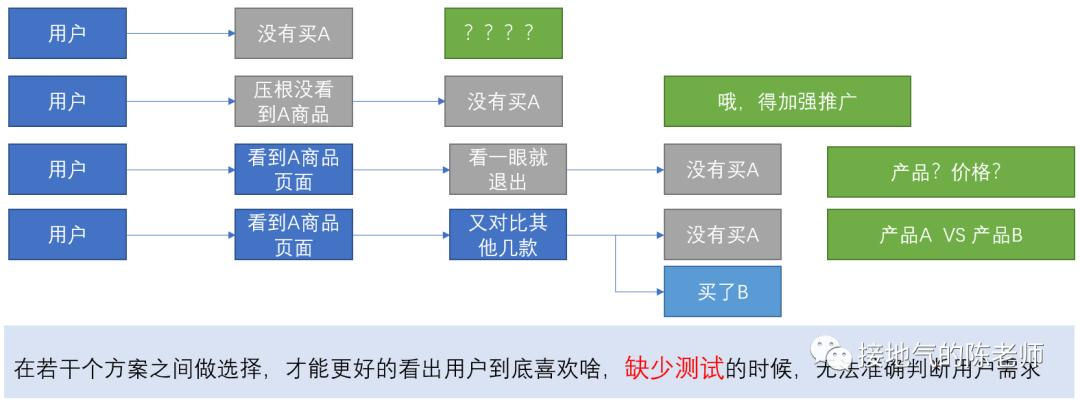 用户需求测试上述方法,只针对数据积累多,行为多的重度用户合适,大量的轻度用户,缺少数据,很难分析深入,因此需多做测试。