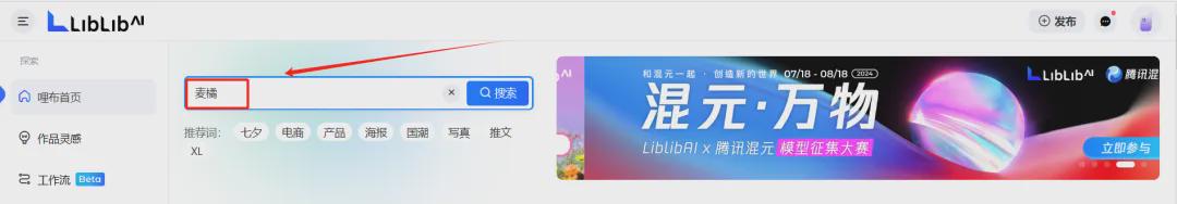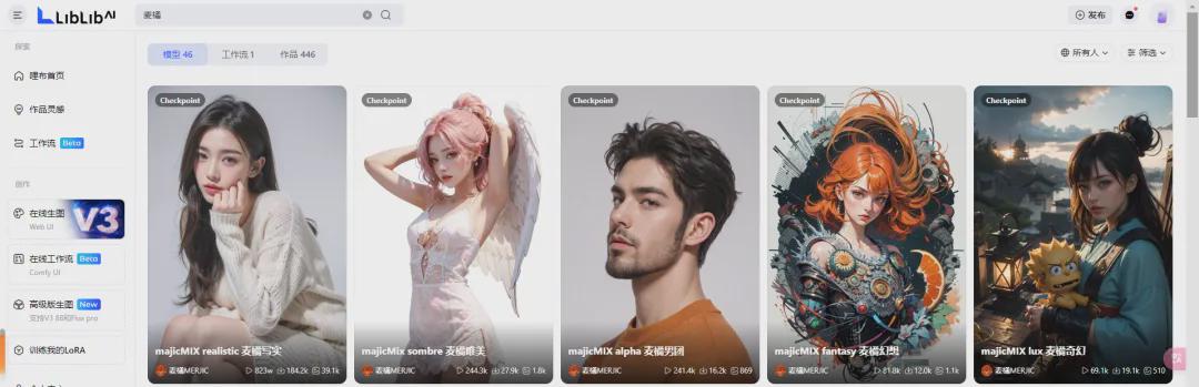 就会进入到所有与"麦橘"关键词相关的大模型列表界面