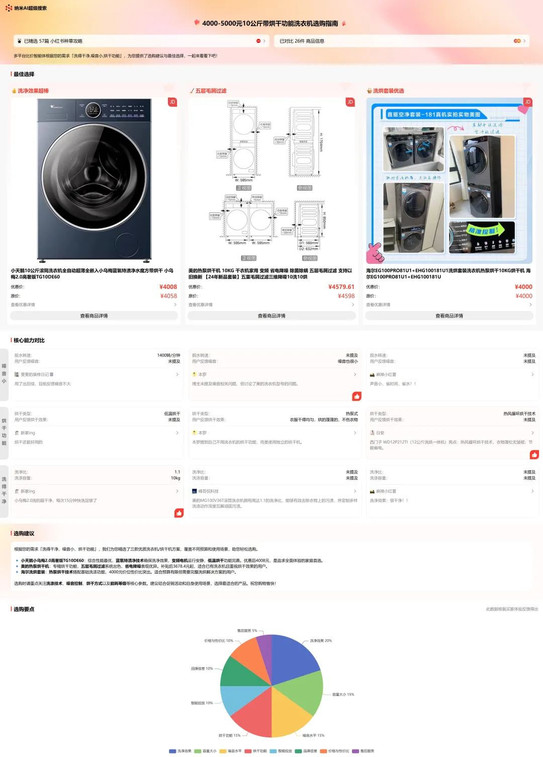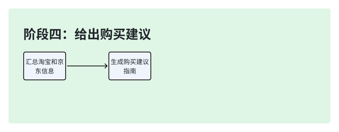 阶段四:给出购买建议;这块就是做一个信息的大汇总,然后模型处理后给一个购买建议指南页面。