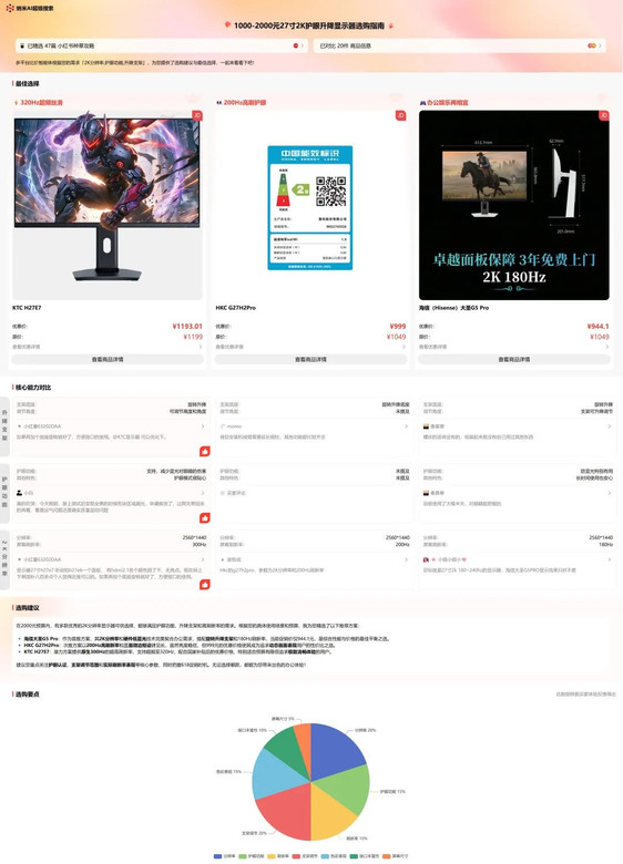 最近618想再买一个电脑显示器,最近就在疯狂的做攻略,一边自己翻小红书、哔哩哔哩,一边自己找AI聊。