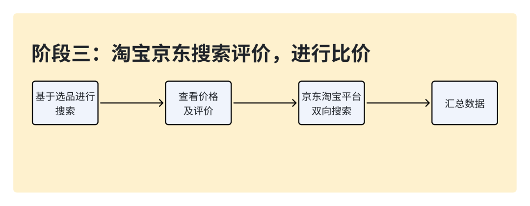 阶段三:淘宝京东比价;这个环节主要是在淘宝和京东上筛选商品用的,浏览商品都详情页和评论数据,最后判断商品推荐那几个,从哪里买划算。