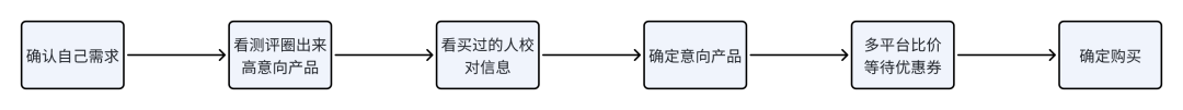 这里边最磨人的就是2、3这两个环节,要看的平台和产品都比较多,用哔哩哔哩和抖音看产品测评,用小红书看用户买完的反馈吐槽。