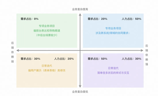 基于业务需求统计分析,我们将初期重点聚焦于中后台场景下1-3天人日及以下的日常开发需求。数据显示,此类需求在整体业务需求中占据相当高的比例,具备显著的规模化提效价值。