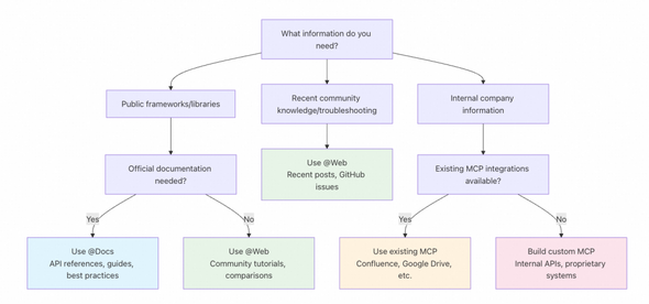 Cursor官方前不久更新了一篇指南,主题名为“Working with Documentation”,目的是指导大家如何在Cursor中更好地使用三类文档(@Docs、@Web、MCP),以帮助模型获取能够获取最新、最准确的上下文信息。